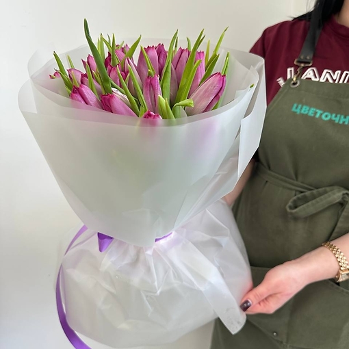 штКупить25 махровых тюльпанов в нежной матовой упаковке.