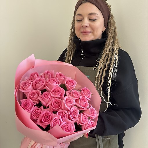 25 роз нежно-розового оттенка. Страна-производитель: Россия.